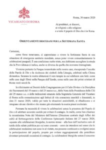 Nota per gli Orientamenti per la Settimana Santa della Diocesi di Roma