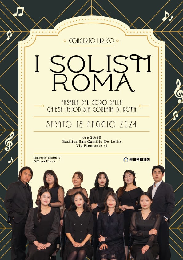 L’Ensamble “I Solisti Roma” nasce come gruppo di artisti coreani basati a Roma, città ricca di storia, cultura, musica e arte, per studiare ed approfondire il canto lirico. Uniti dai valori della fede gli artisti de “I Solisti Roma” desiderano diffondere la speranza, la gioia e la pace nel mondo attraverso la loro musica, travalicando le barriere etnico-linguistiche.