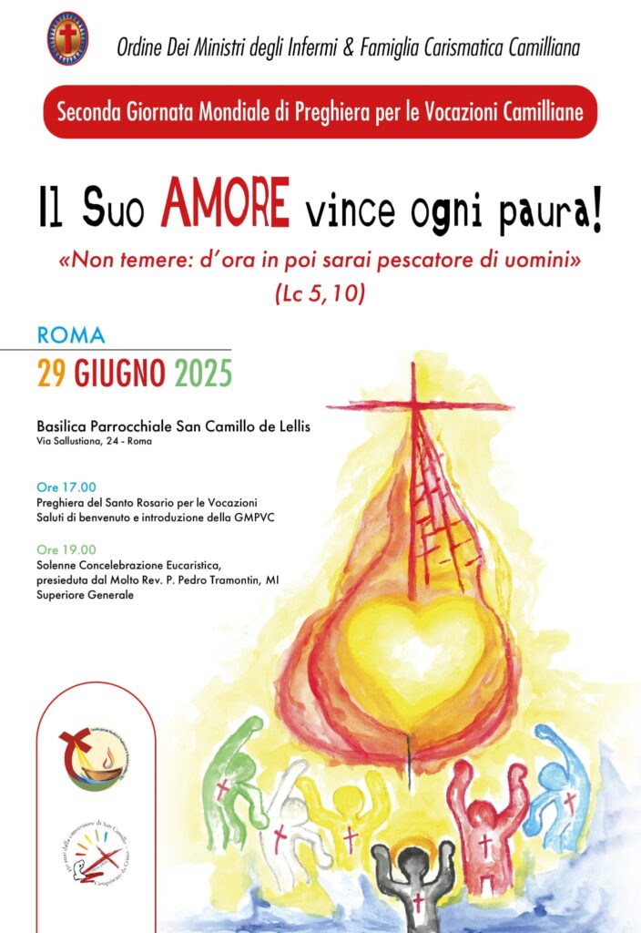 Il tema proposto per quest’anno, “Il suo amore vince ogni paura”, ci invita ad accogliere coraggiosamente la chiamata di Dio nello specifico del carisma di misericordia verso gli infermi; vocazione condivisa e attualizzata con passione dalla grande Famiglia Carismatica camilliana in tutto il mondo”